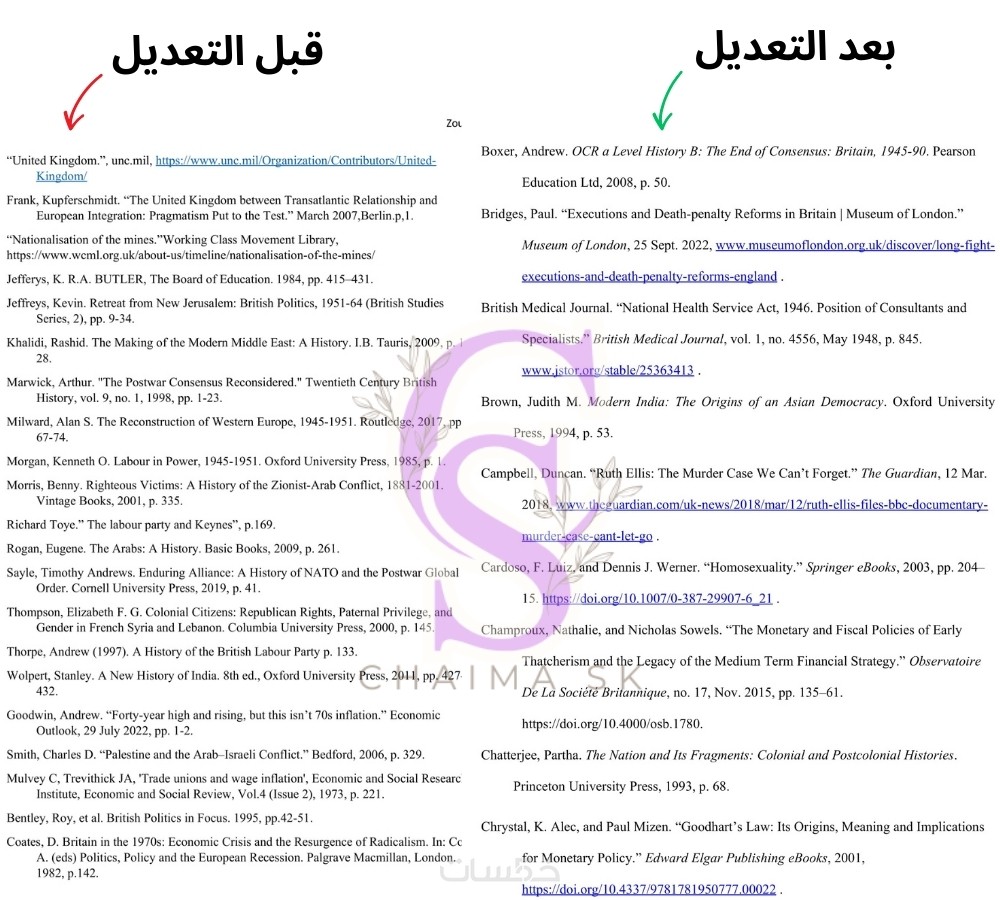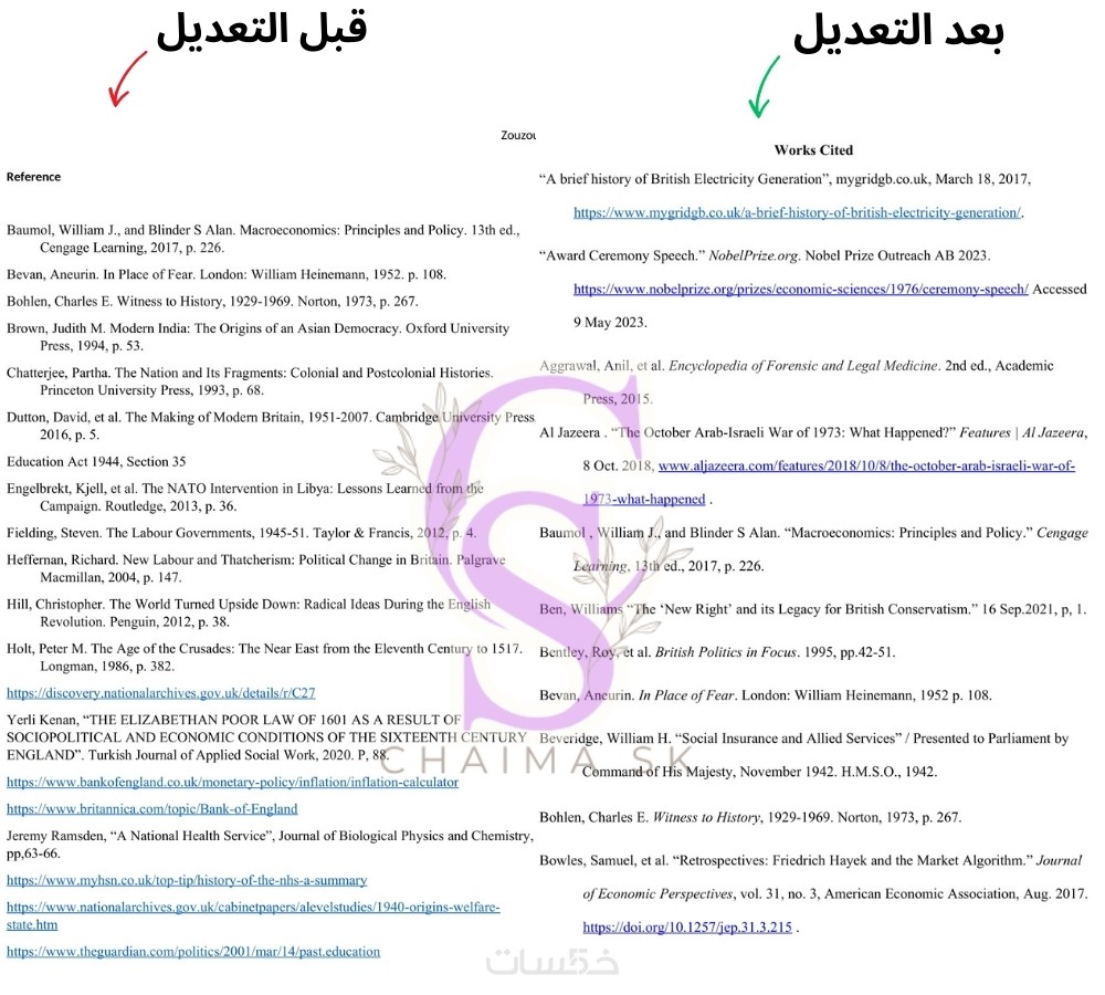 أحرص على أن تكون الخدمة متقنة في صياغة و توثيق قائمة المراجع مع الإلتزام بالتوقيت.