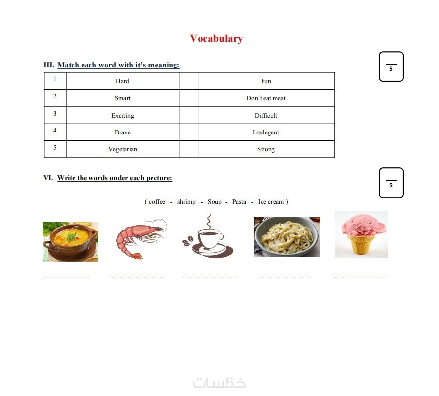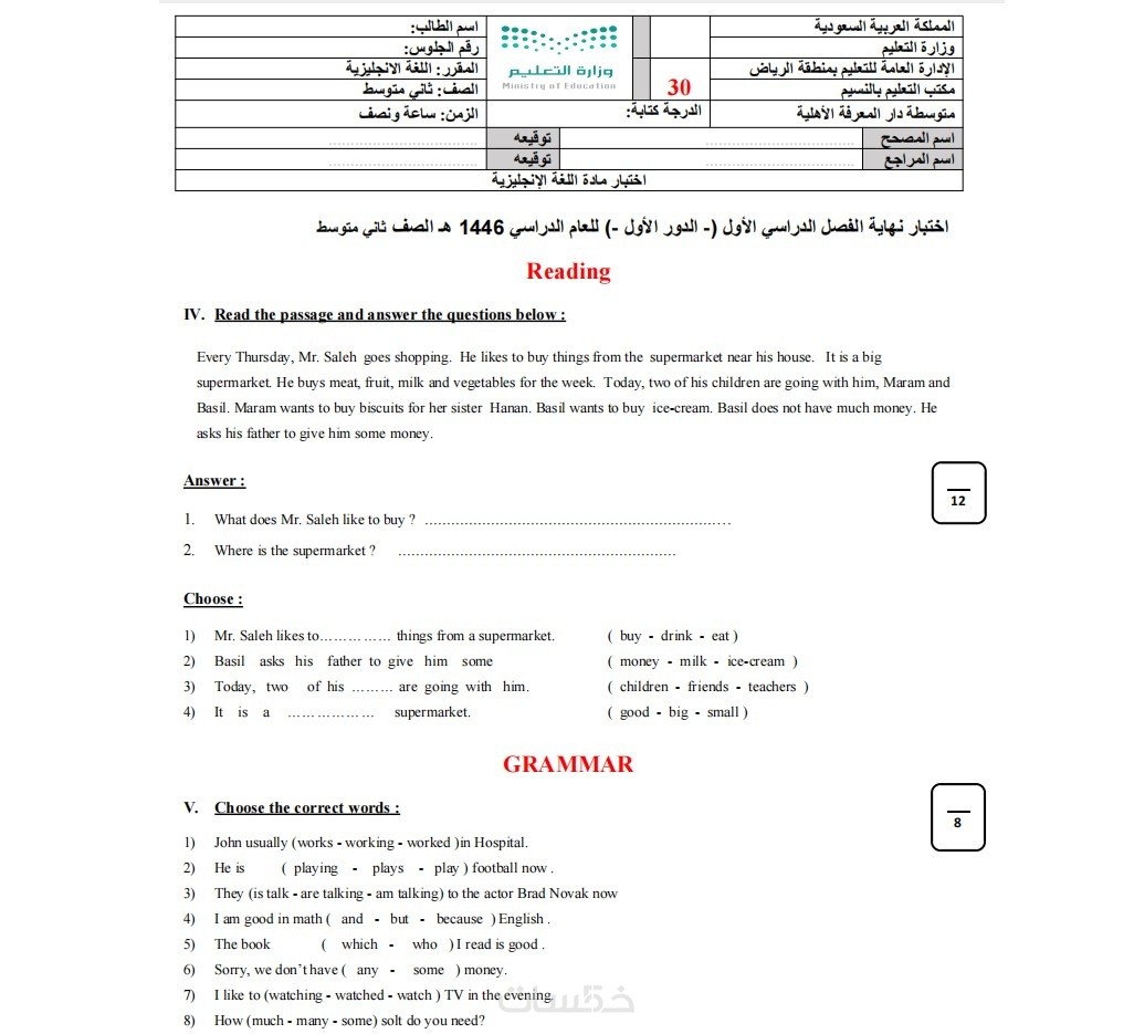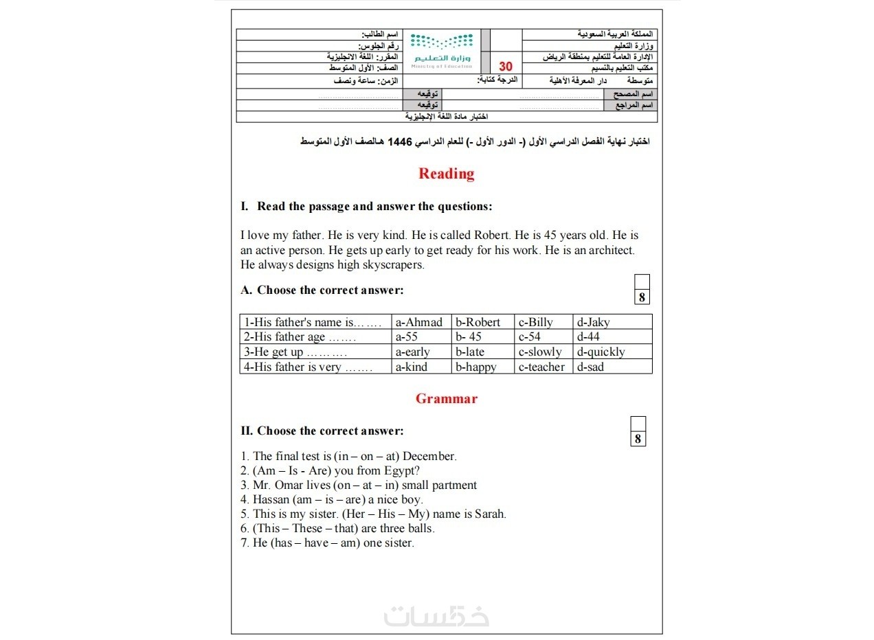 أقدم خدمة إعداد وتجهيز نماذج اختبارات مميزة باللغة العربية أو الإنجليزية، مطابقة للمنهج التعليمي أو حسب رغبة العميل، مع تنوع في الأسئلة مثل: اختيار من متعدد، صح وخطأ، أسئلة مقالية، توصيل، وإكمال الفراغات.