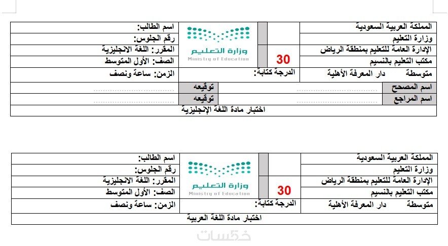 أحرص على أن يكون الاختبار بصياغة واضحة، وتنسيق مرتب واحترافي، وجاهز للطباعة بصيغة PDF، مع إمكانية إضافة كليشة المدرسة وبيانات الاختبار بشكل منظم.