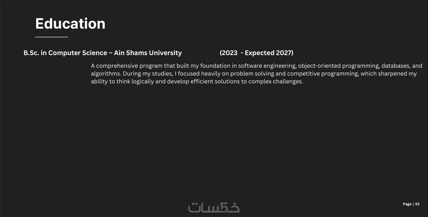قابل للاستخدام في التقديم للشركات، العروض، المنح، الوظائف، أو المواقع المهنية.