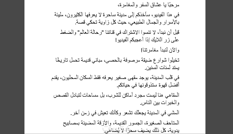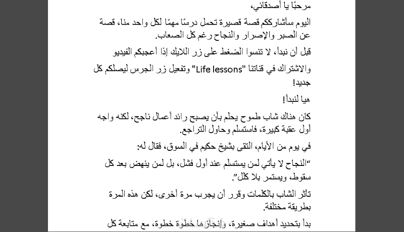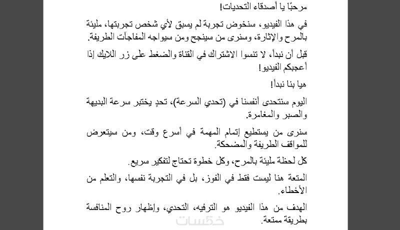 ملاحظات: يمكن تخصيص الأسلوب حسب نوع القناة أو زيادة عدد الكلمات حسب التطويرات.