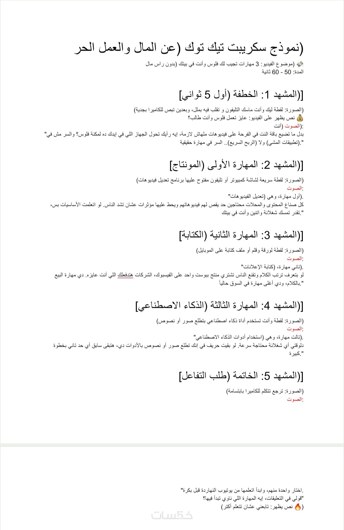كتابة سكريبت فيديو قصير (Shorts/Reels/TikTok) حتى دقيقة واحدة (حوالي 150-200 كلمة).